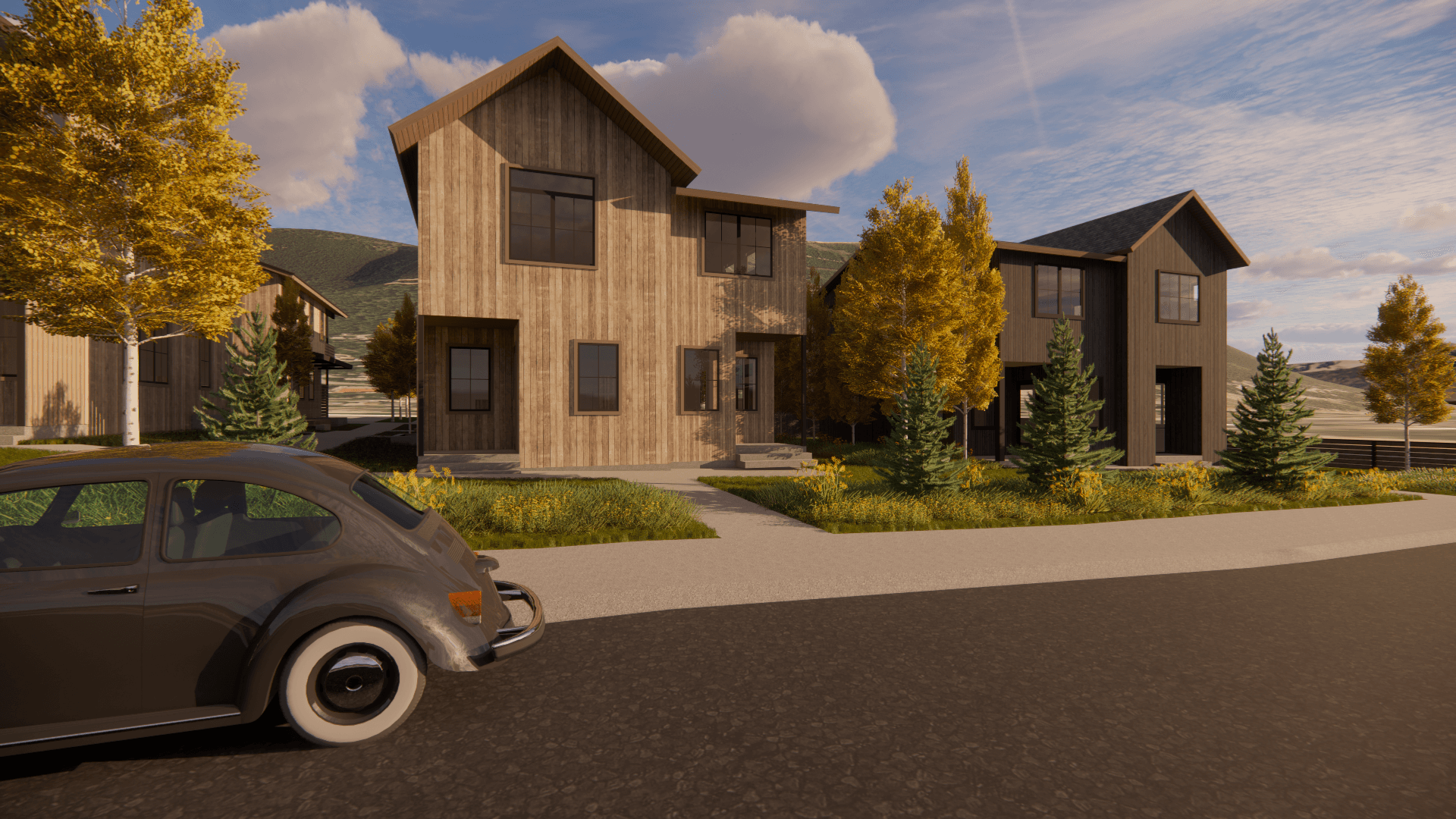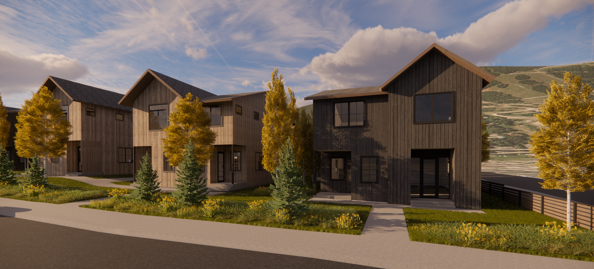 The development offers a mix of one- and two-bedroom units, each with unfinished basements. This allows the new development to meet the needs of households of various sizes, whether it is home to a single person or a growing family. Decks provide private outdoor space at the ground level and balconies give way to views of Snow King. Interconnected courtyards provide ample parking for our workforce.